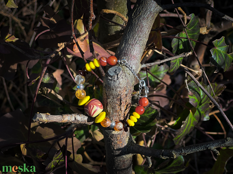 A karkötő összhatása olyan, mintha egy apró, hordozható napot kapnál. A karneol, a borostyán és a citrin együtt olyan, mintha Sól fényét, a régi erdők emlékét és az őszi skandináv nap utolsó meleg sugarait tartanák egy körben.