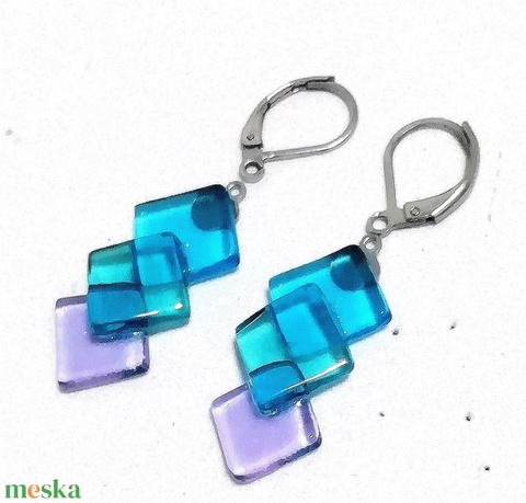 ORVOSI FÉM ! Kristály kockák trendi fülbevaló , ajándék névnapra, születésnapra.