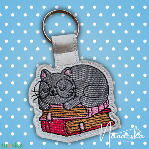Szürke cicás kulcstartó