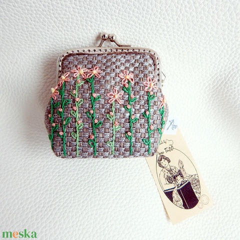 - Anyaga: szövet, péztárca keret, hímzőfonal, pamutvászon, merevítők, lánc, medál