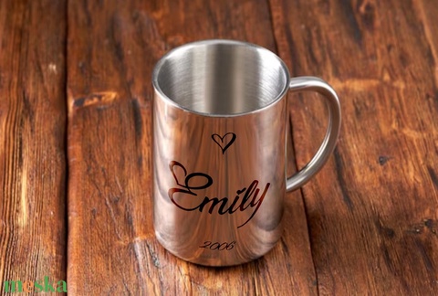 Gravírozott duplafalú fém bögre - Név
