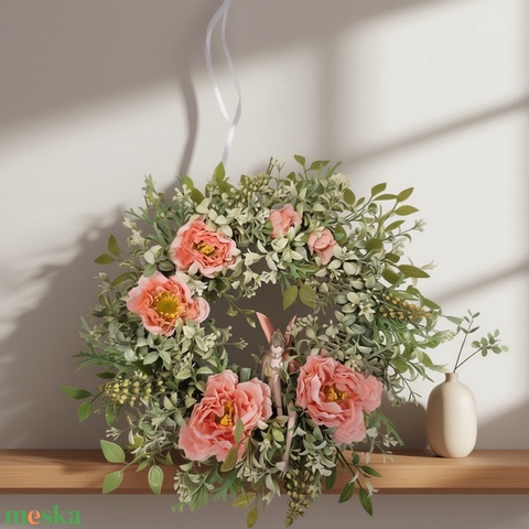 Virágos tavaszi koszorú - tündérrel, természetes hatású