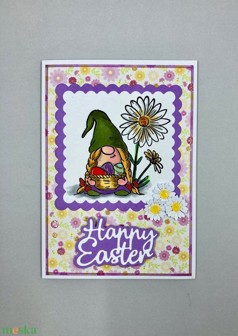 Húsvéti manó/törpe/gnóm tojásokkal, húsvéti képeslap, ajándékkísérő