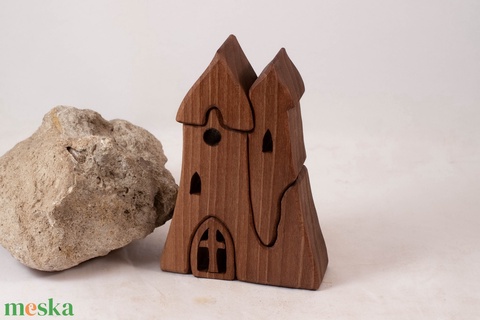 Fa templom, várkastély, fa építő, kirakó