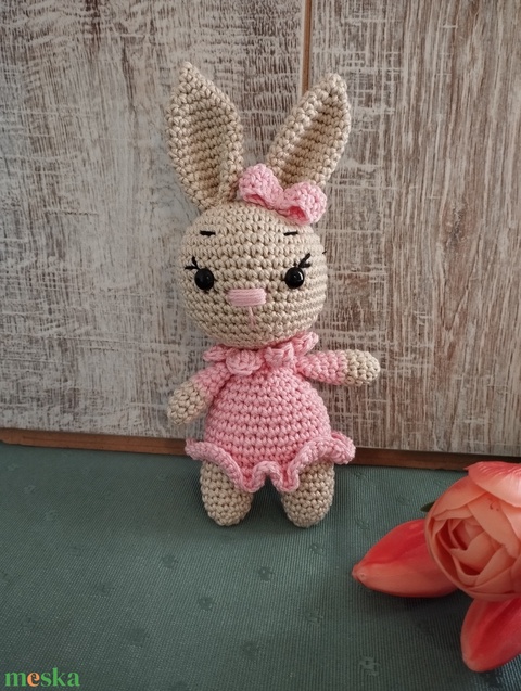 Horgolt nyuszilány - Rózsaszín szoknyás