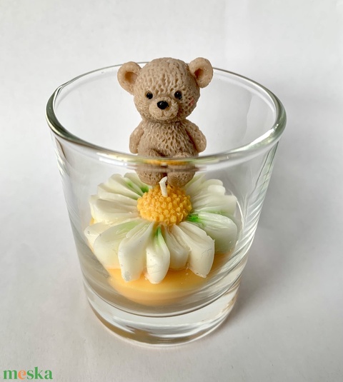 Illatgyertya, virágon csücsülő maci, jázmin illat