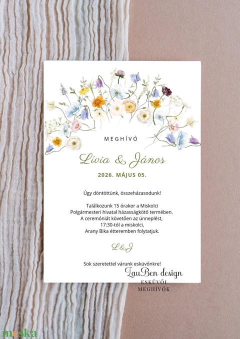 Egyedi vadvirágos esküvői meghívó – Akvarell grafikával, modern stílusban