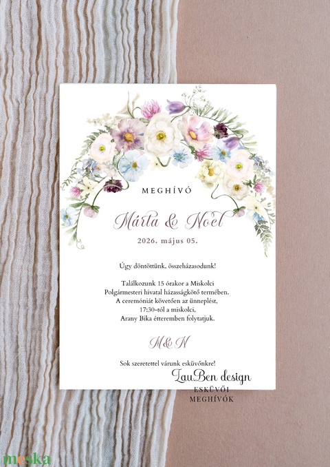 Egyedi vadvirágos esküvői meghívó – Akvarell grafikával, modern stílusban