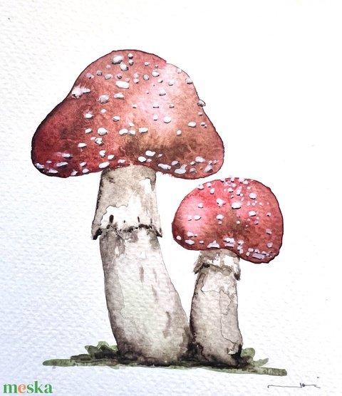 Eredeti akvarell gomba pár festmény
