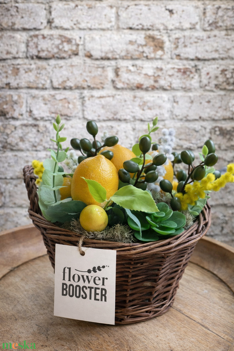 - Anyaga: selyemvirág, tartósgyümölcs, szárazoázis, vesszőkosár