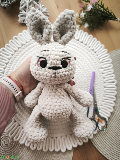 - Anyaga: zsenília fonal, szilikonizált poliészter tömőanyag, biztonsági szem