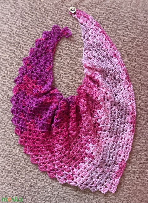 Kiskendő, sál pink-lazac-púder árnyalatokban, kis gombbal