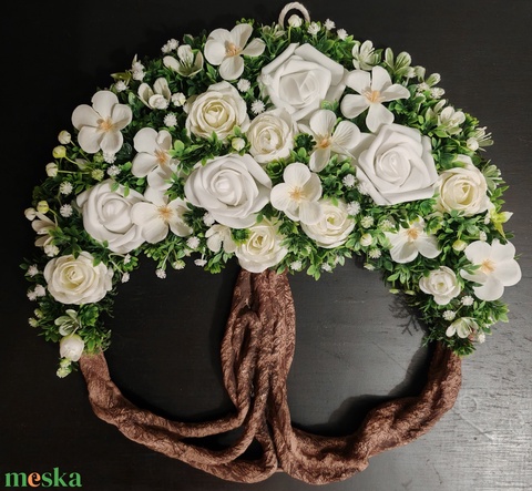 Hófehér virágokkal készült tavaszi Életfa (Tündérfa) kopogtató