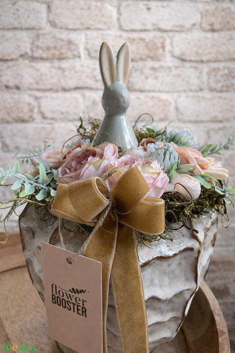 - Anyaga: kerámiakaspó, szárazoázis, selyemvirág, bársonyszalag, kerámianyuszi
