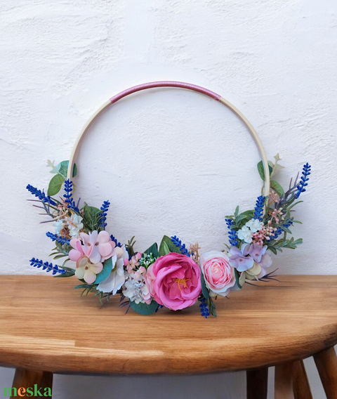 - Anyag/Összetevő koszorúalap, szatén szalag, termés, egyéb dekorációk, ragasztó, szárazvirág, élethű virág