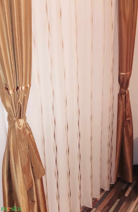 Nyírt mintás (shearly) függöny karamell taft sötétítővel egyben készre varrva 3,5m széles