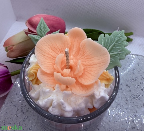 Habos orchidea virágos szójagyertya – barackvirág árnyalatú, kézműves üveges gyertya