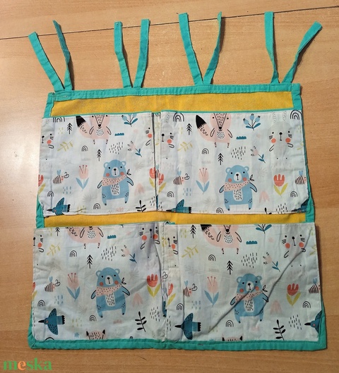 Zsebes vászon tároló babaágyra - pillangó, maci, virág mintás, 4 zsebes