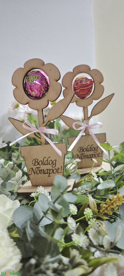 Nőnap, nőnapi ajándék, nyalóka, virág