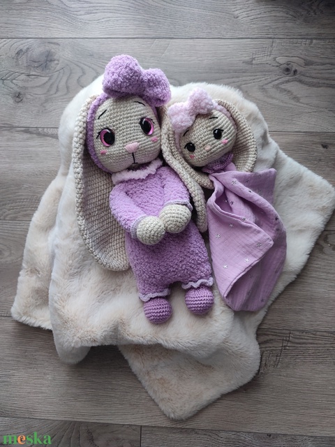 Horgolt nyuszi hozzá illő szundikendővel 🩷