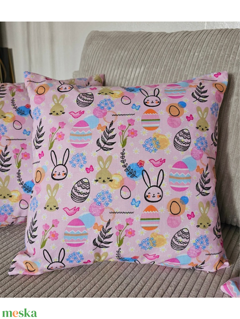 Húsvéti nyuszis díszpárna fehér hátoldallal