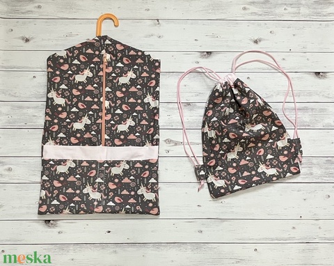 Unikornis mintás ovizsák és tornazsák szett, pompom dekorral