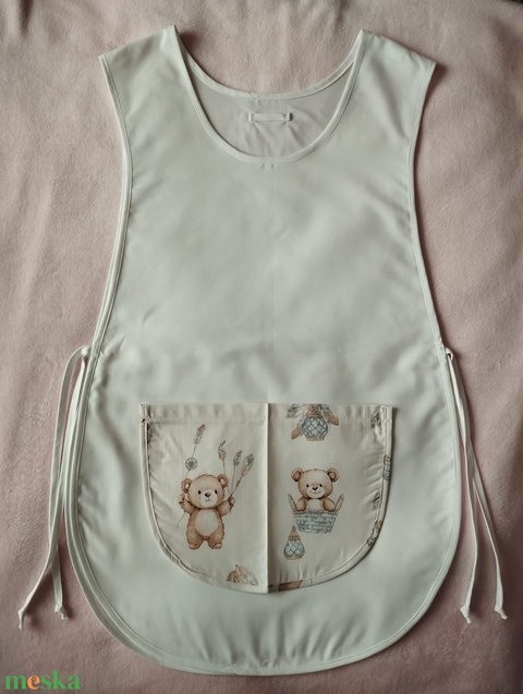Női fehér lapköpeny,Maci 🐻 mintás zsebbel , ovis , munkaruha