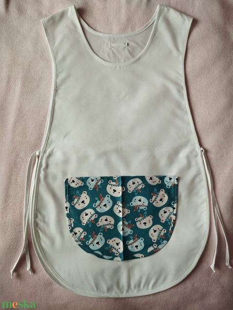 Női fehér lapköpeny,Maci 🐻 mintás zsebbel , ovis , munkaruha
