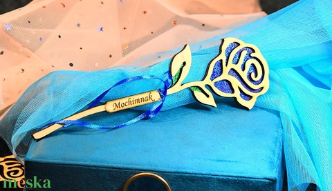 Nőnapi kék rózsa fából név gravírozással