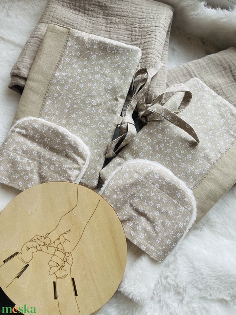 baba - mama, babaemlékek, egészségügyi kiskönyv borító, duplagéz, fürdetőkesztyű, iker, ilreknek, ikerajándék, karszalag, emlék, babacsomag, ikercsomag, bézs, virágos, újszülött, újszülöttajándék, frissanyuka, twins