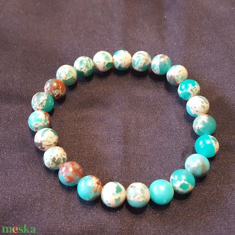 Pompás zöld türkiz tarka jáspis bogyós karkötő gumis(8 mm)