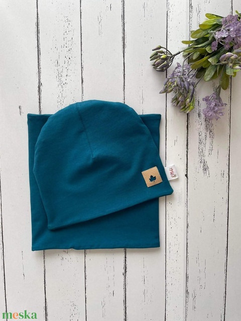 Petrol színű sapka-sál szett (50-52 cm)