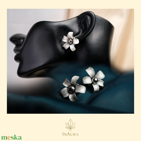 Gyöngyház fehér virág fülbevaló