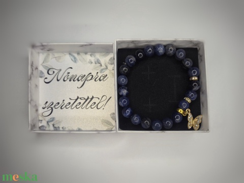 - Anyaga: ásvány gyöngy, gumis damil, fém medál
