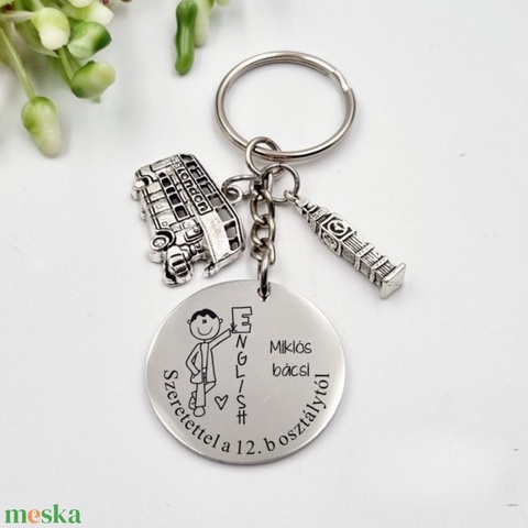 Ajándék angoltanárnak ballagásra, pedagógusnapra, tanév végére - Gravírozott grafikás ballagási kulcstartó 5_40.