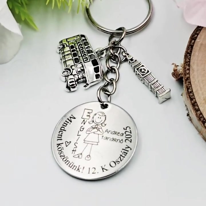 Ajándék angoltanárnak ballagásra, pedagógusnapra, tanév végére - Gravírozott grafikás ballagási kulcstartó 5_41.