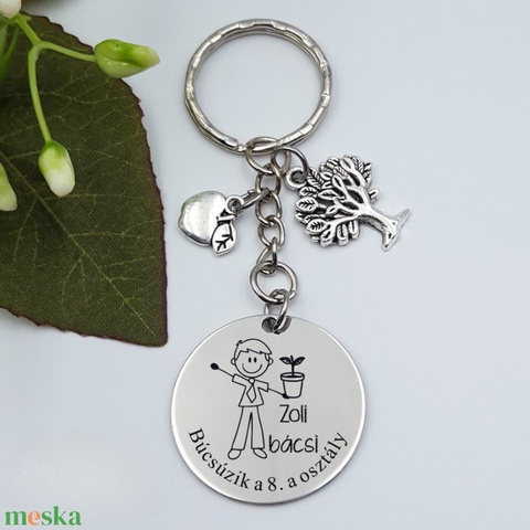 Ajándék biológiatanárnak ballagásra, pedagógusnapra, tanév végére - Gravírozott grafikás ballagási kulcstartó 1_26.