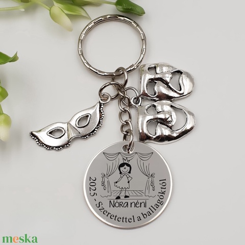 Ajándék drámatanárnőnek ballagásra, pedagógusnapra, tanév végére - Gravírozott grafikás ballagási kulcstartó 1_50.