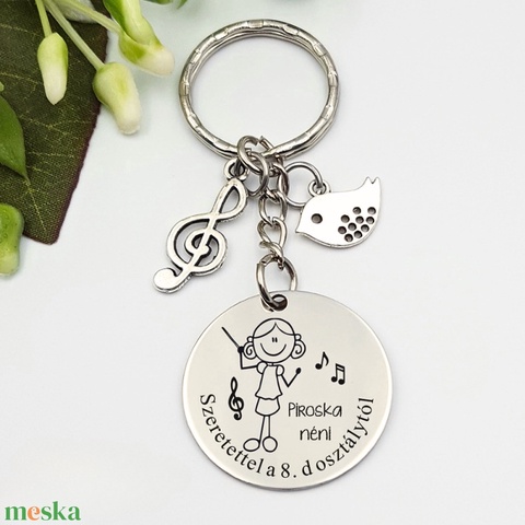 Ajándék énektanárnőnek ballagásra, pedagógusnapra, tanév végére - Gravírozott grafikás ballagási kulcstartó 1_34.