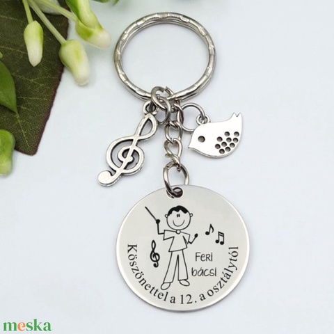 Ajándék énektanárnak ballagásra, pedagógusnapra, tanév végére - Gravírozott grafikás ballagási kulcstartó 1_35.
