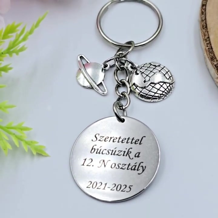 Ajándék földrajztanároknak ballagásra, pedagógusnapra, tanév végére - Gravírozott szöveges ballagási kulcstartó 1.