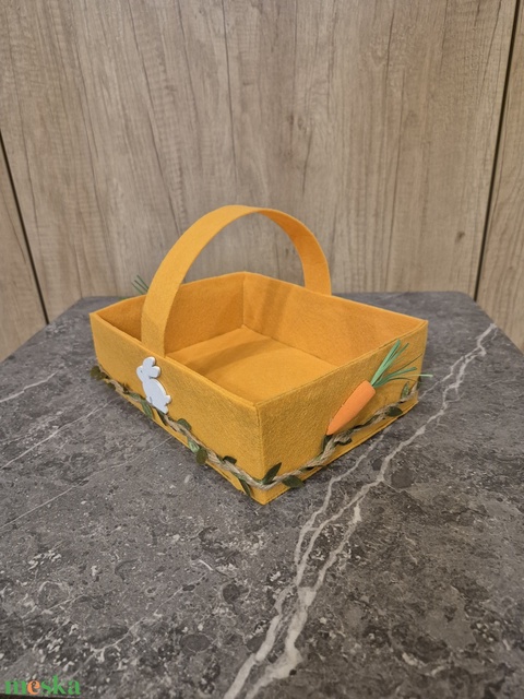 Filc anyagból készített húsvéti tojástartó, fiúknak tojásgyűjtő, esetleg az ünnepi asztal dísze.