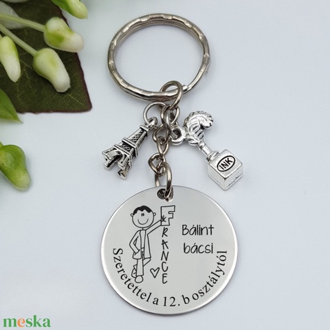 Ajándék franciatanárnak ballagásra, pedagógusnapra, tanév végére - Gravírozott grafikás ballagási kulcstartó 1_42.