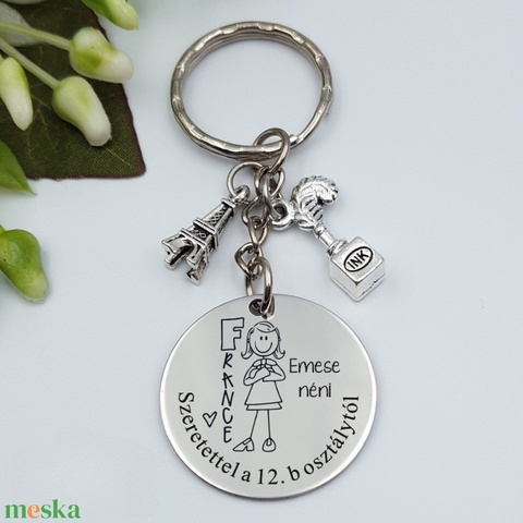 Ajándék franciatanárnőnek ballagásra, pedagógusnapra, tanév végére - Gravírozott grafikás ballagási kulcstartó 1_43.