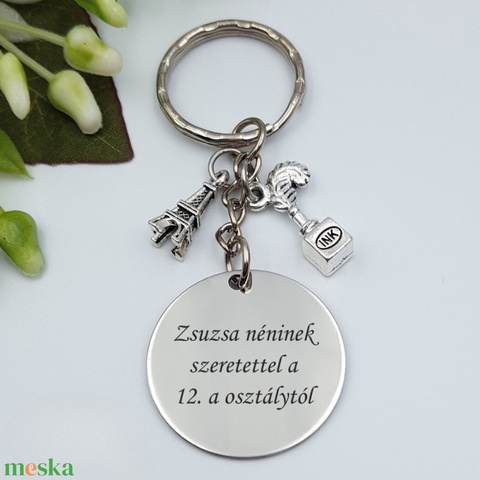 Ajándék franciatanároknak ballagásra, pedagógusnapra, tanév végére - Gravírozott szöveges ballagási kulcstartó 1.