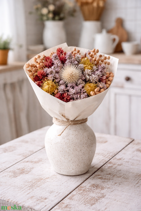 - Anyaga: szárazvirág, papírcsomagolás