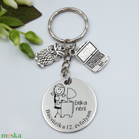 Ajándék informatikatanárnőnek ballagásra, pedagógusnapra, tanév végére - Gravírozott grafikás ballagási kulcstartó 1_23.