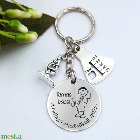 Ajándék kémiatanárnak ballagásra, pedagógusnapra, tanév végére - Gravírozott grafikás ballagási kulcstartó 1_28.