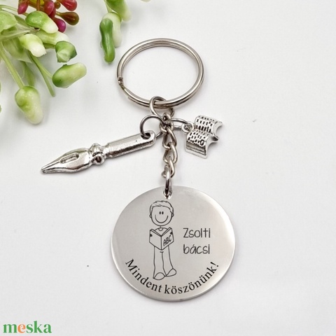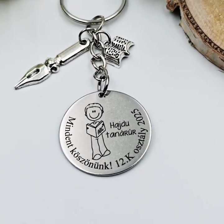 Ajándék magyartanárnak ballagásra, pedagógusnapra, tanév végére - Gravírozott grafikás ballagási kulcstartó 3_17.