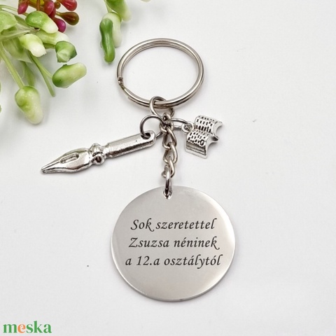 Ajándék magyartanároknak ballagásra, pedagógusnapra, tanév végére - Gravírozott szöveges ballagási kulcstartó 3.